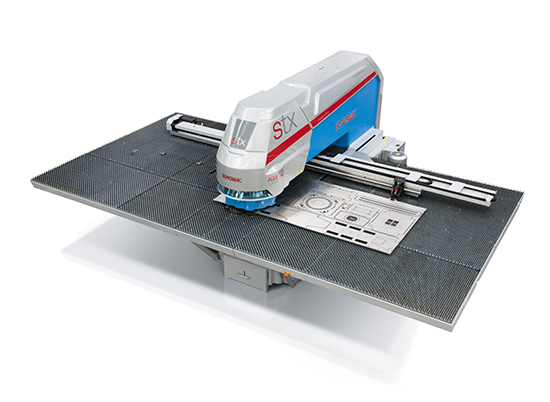 該系列是EUROMAC新推出的高端機(jī)型,是在MTX FLEX系列的基礎(chǔ)上進(jìn)行了升級(jí):機(jī)架加固和加重;Y軸采用雙電機(jī)驅(qū)動(dòng)。具體表現(xiàn)為: